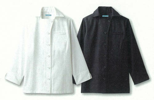 飲食店・ホテル・サービスユニフォーム(制服)接客・厨房・コックコート・エプロン飲食店・ホテル・サービスユニフォームカフェ・ベーカリー・レストランに最適!!スマートな長袖ウイングカラーシャツ女性用【ホワ