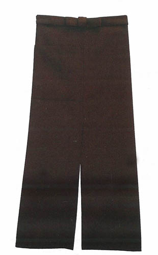 <素材>ウールストレッチ ポリエステル85%・ウール15%左右ヒップポケット、両脇ポケット、前左右Dカン付、側章付、裏地無しサイズ7号9号11号13号15号ウエスト6871747782ヒップ909396100104股上22.522.522.522.522.5股下ハーフメイド(83)